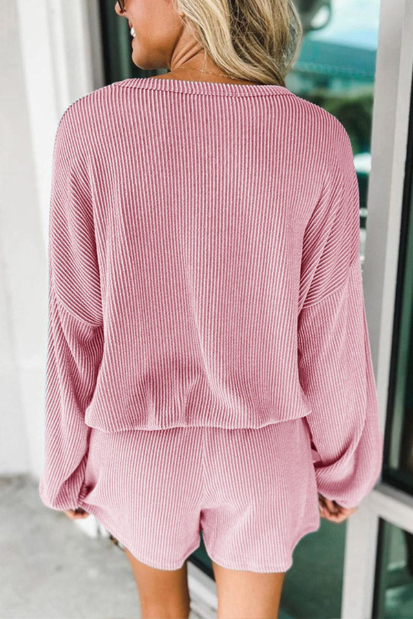 Corded V Neck Slouchy Top & Pocketed Shorts Set